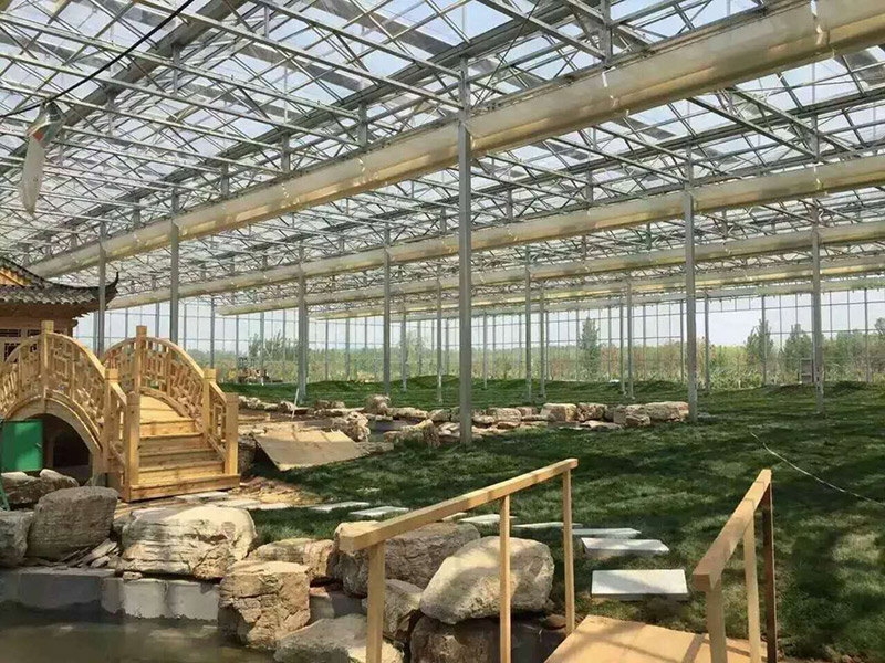 我們承建的生態(tài)餐廳,克服了種植溫室易結(jié)露,視野小的弊端,以大空間,舒適、環(huán)保為理念,設(shè)計(jì)開發(fā)了高屋脊、大跨度、大空間的用類型,覆蓋材料采用玻璃或PC板,外形造型美觀,恢弘大氣,內(nèi)部視野開闊,寬敞明亮。置身與其中,既能感受田園的韻味,又能享受美味佳肴。