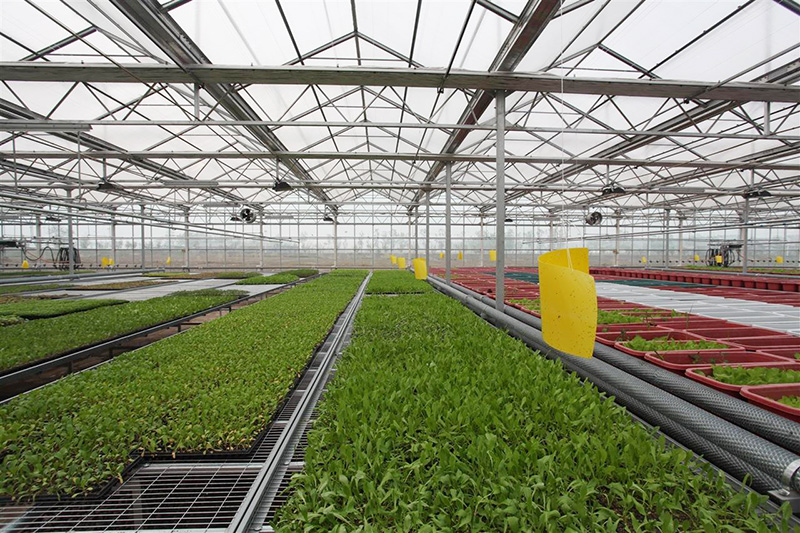 玻璃溫室通風(fēng)目的主要是為了排除溫室的余熱及溫室內(nèi)的水分, 調(diào)整溫室內(nèi)空氣成分, 排除有害氣體,使溫室內(nèi)的環(huán)境溫度、濕度和空氣等條件適宜植物生長的要求。